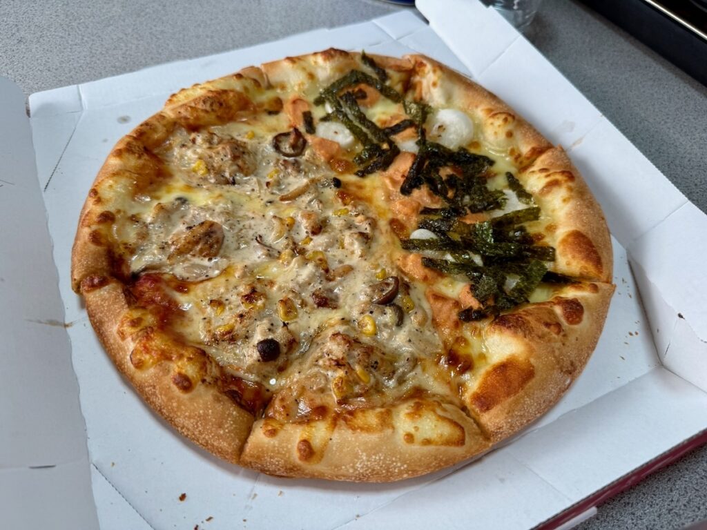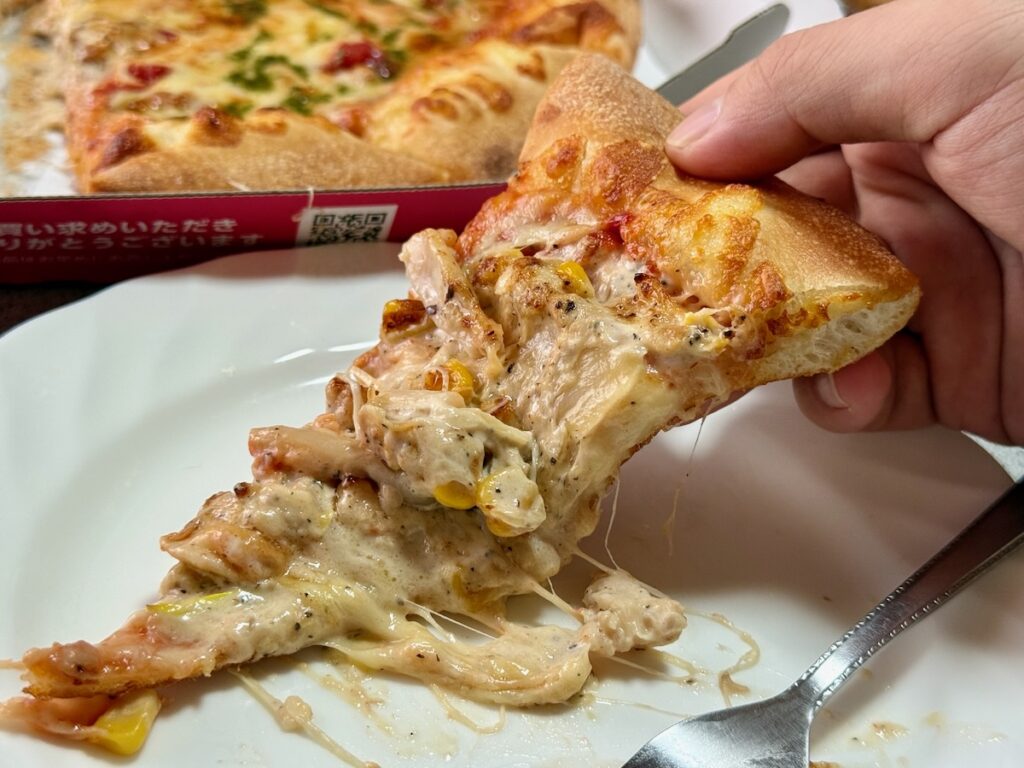 続いて、照りマヨチキン。ピザ・ロイヤルハットの照り焼きチキンピザに相当