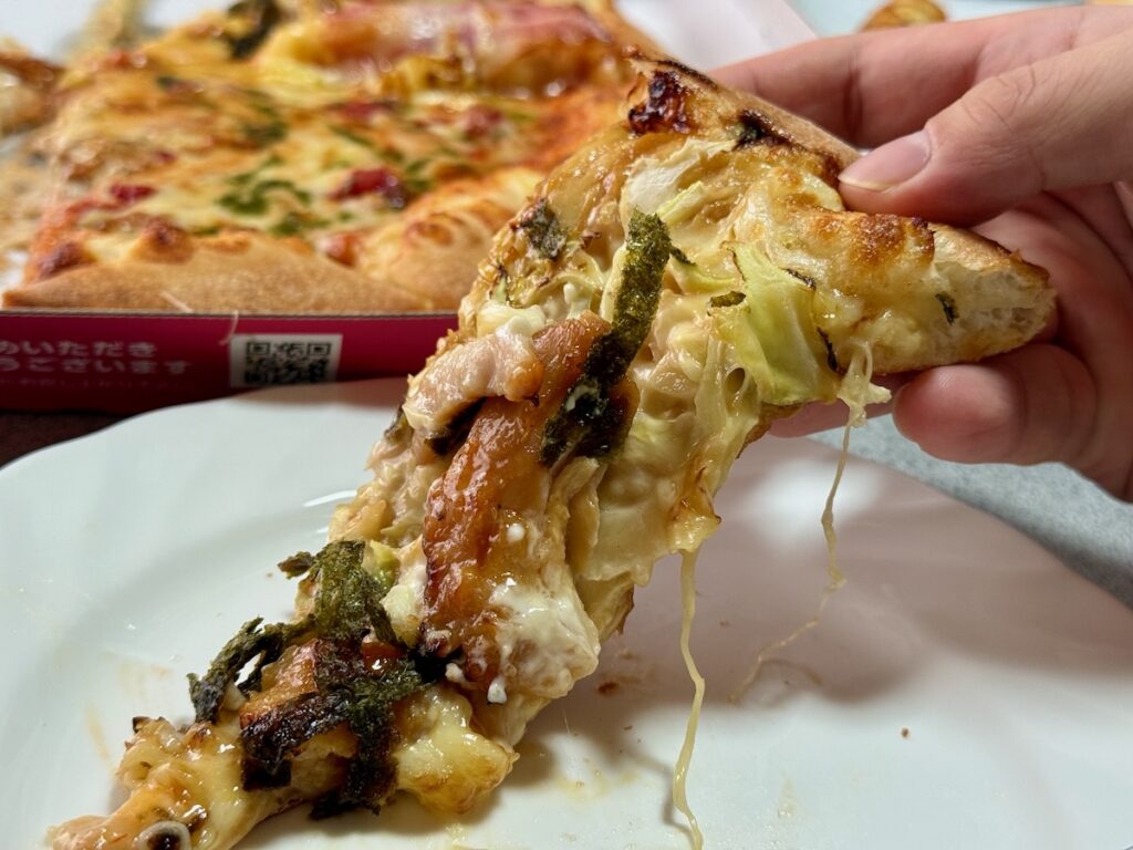 キャベツたっぷりで、ザクザクな食感が美味しい。ピザ・ロイヤルハットの時よりキャベツが増えてる気がしますね。ザクッと食べごたえあって、お好み焼きみたいな味で美味しい