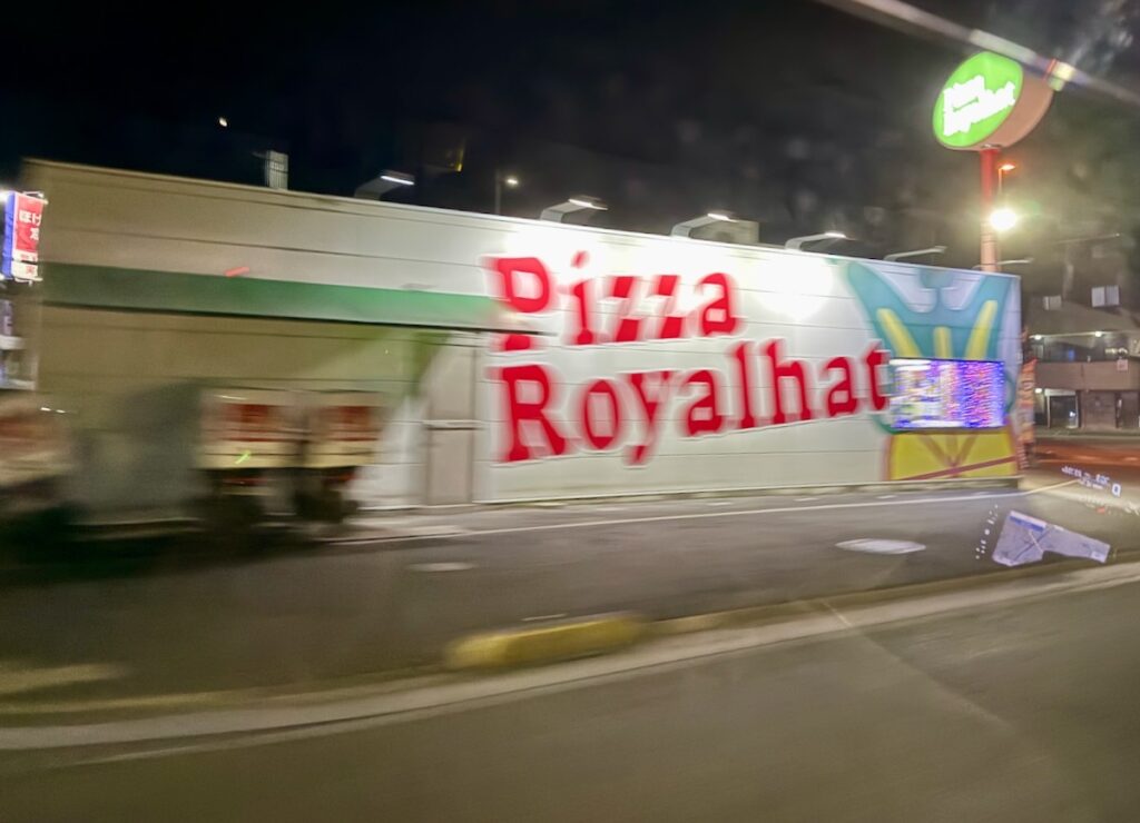 ちなみに、帰りがけに車が動いてる時に撮影したのでブレてますけど、お店の店構えも変わってません。ピザ・ロイヤルハットのままです。