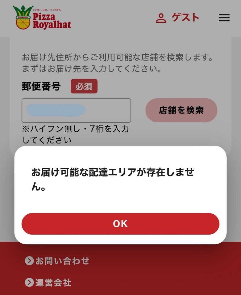 ということで、公式サイトでピザ・ロイヤルハットを注文しようとしたら・・・