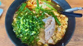 トッピングの目玉焼きで隠れていますが、180gなのでボリュームがあります