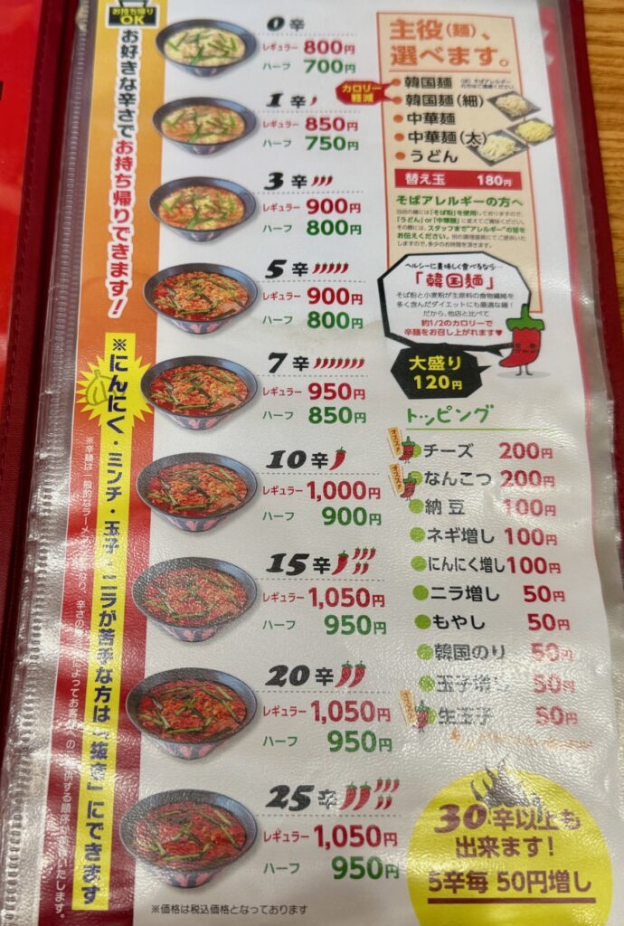 辛さも選べて、トッピングも豊富。これはリピートして、色々なトッピングや辛さを試してみたいです。次に来た時は、もうちょい辛めで5辛にしてみます