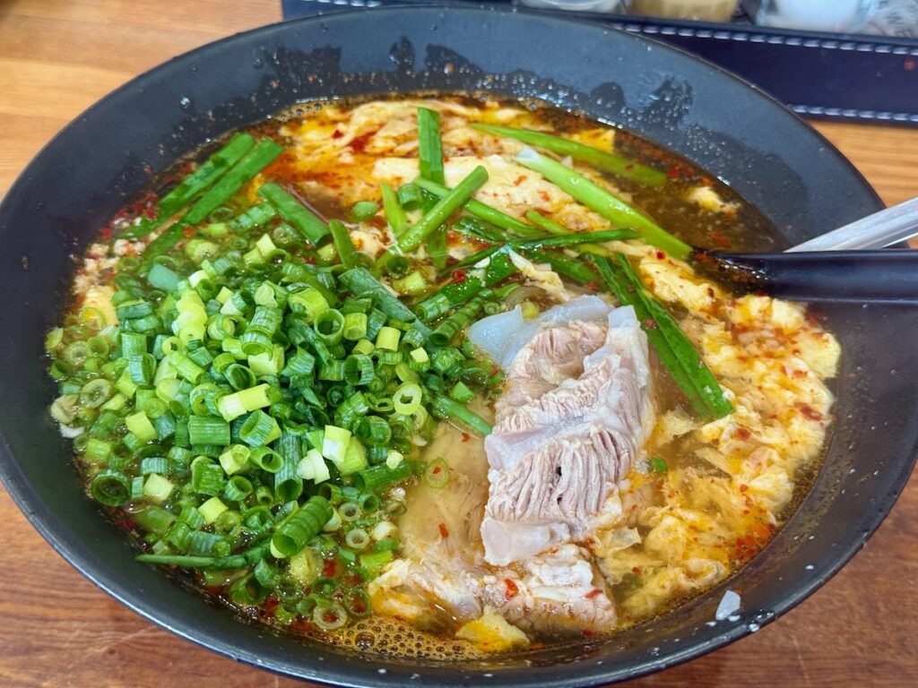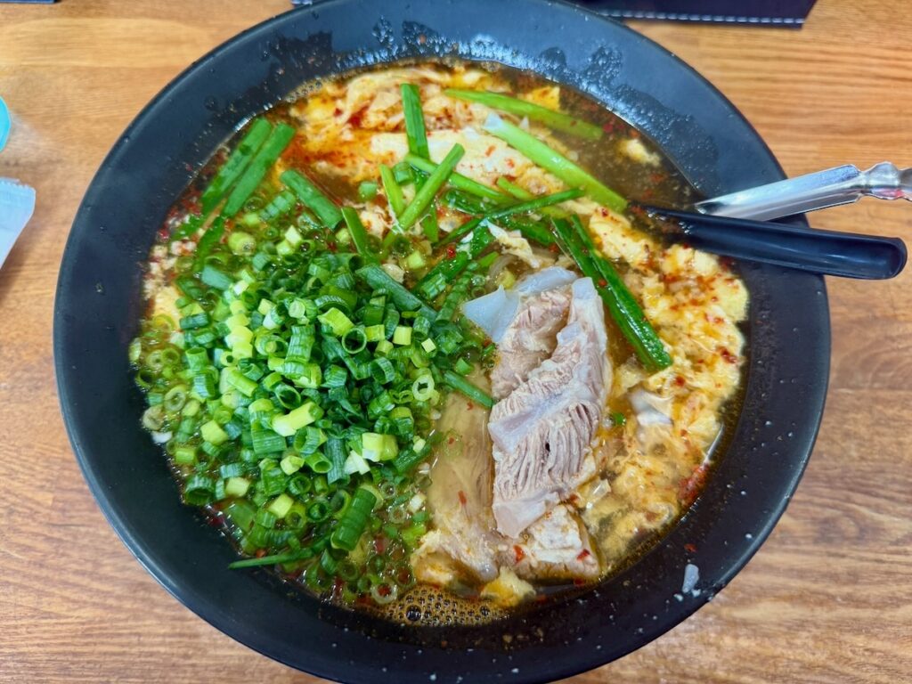 【旨い】辛麺kitchen彩 山西店で3辛のナンコツとネギトッピングで〆の雑炊【人気】