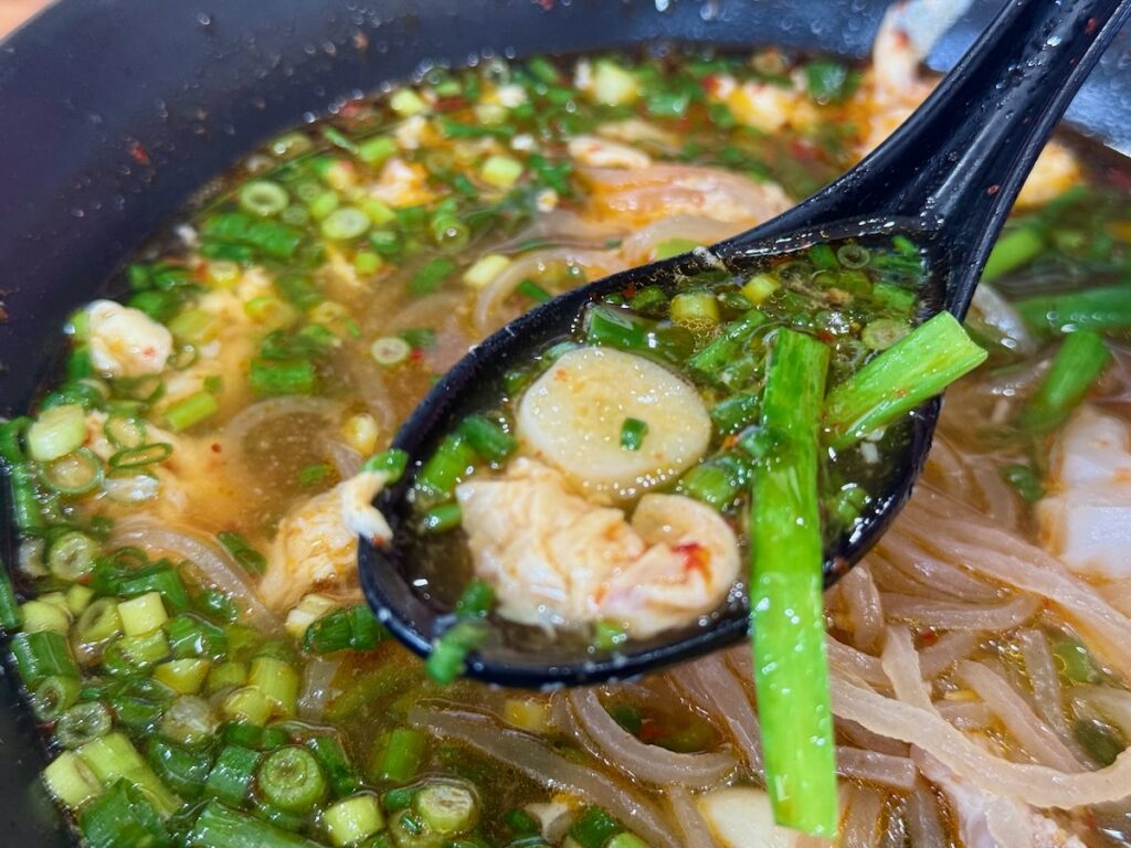 スープにはこんな感じでにんにくの欠片がたっぷり入っています。これはまだ小さい方。もっと大きな塊のにんにく。口臭が少し気になりつつも、にんにくも頂きます。かぁぁぁと来ますね。