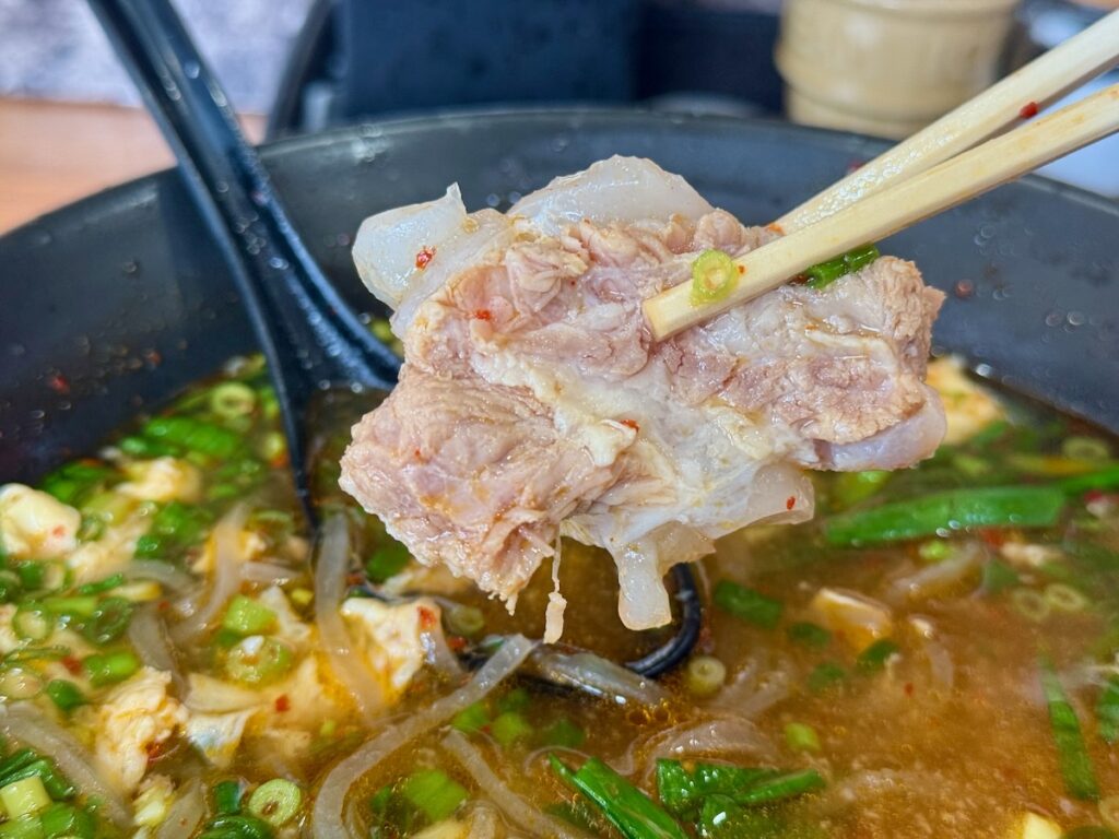 とろとろに柔らかく煮込まれていて、ナンコツのプルプル感とお肉のホロホロ感のコントラスト