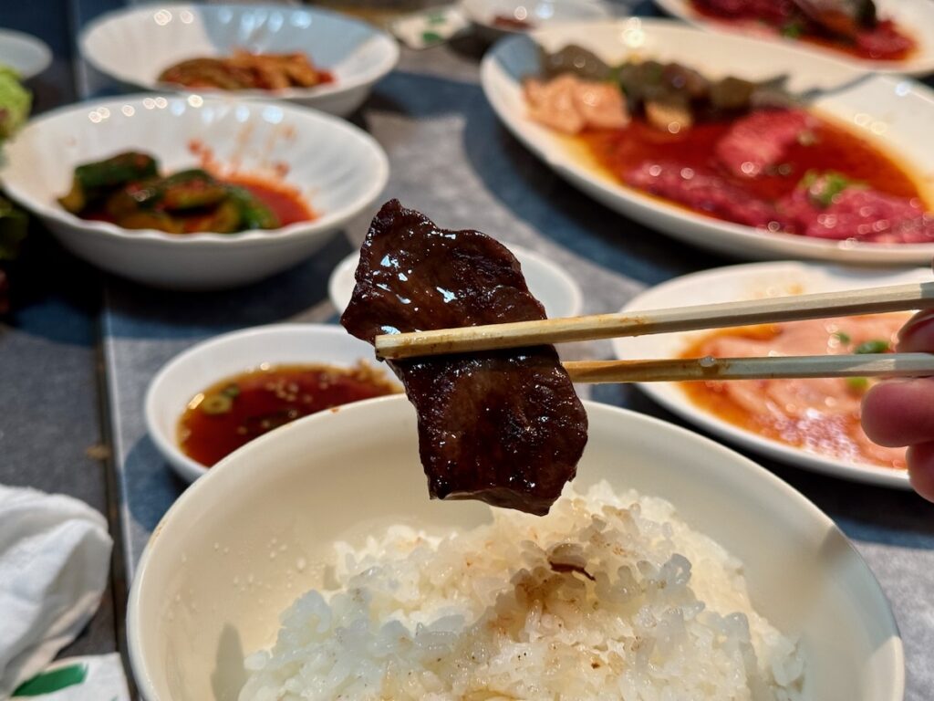 写真があまり撮れてないですけど、めっちゃいろんな種類のお肉をいただきました。あと、キムチも美味しかった。白菜は葉っぱが大きくて、酸味と辛味のバランスが最高。