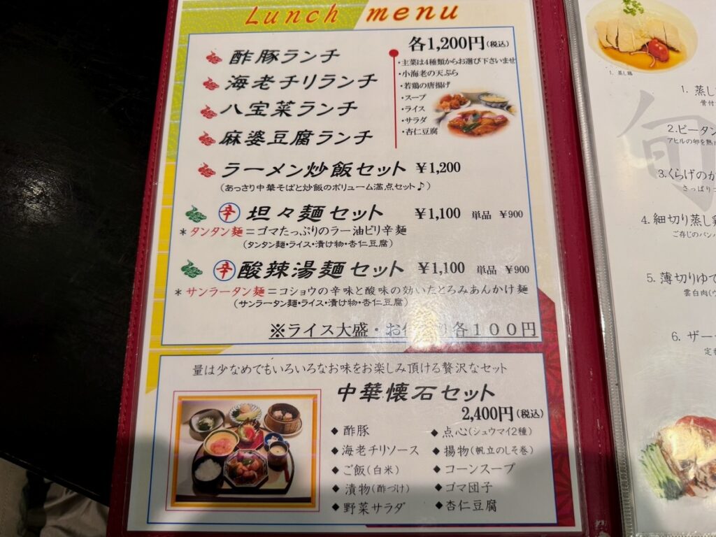 ラーメンチャーハンセット、酢豚ランチは食べたことがあるので他のメニューにしようか、はたまた自分の今日の気分で決めようか・・・