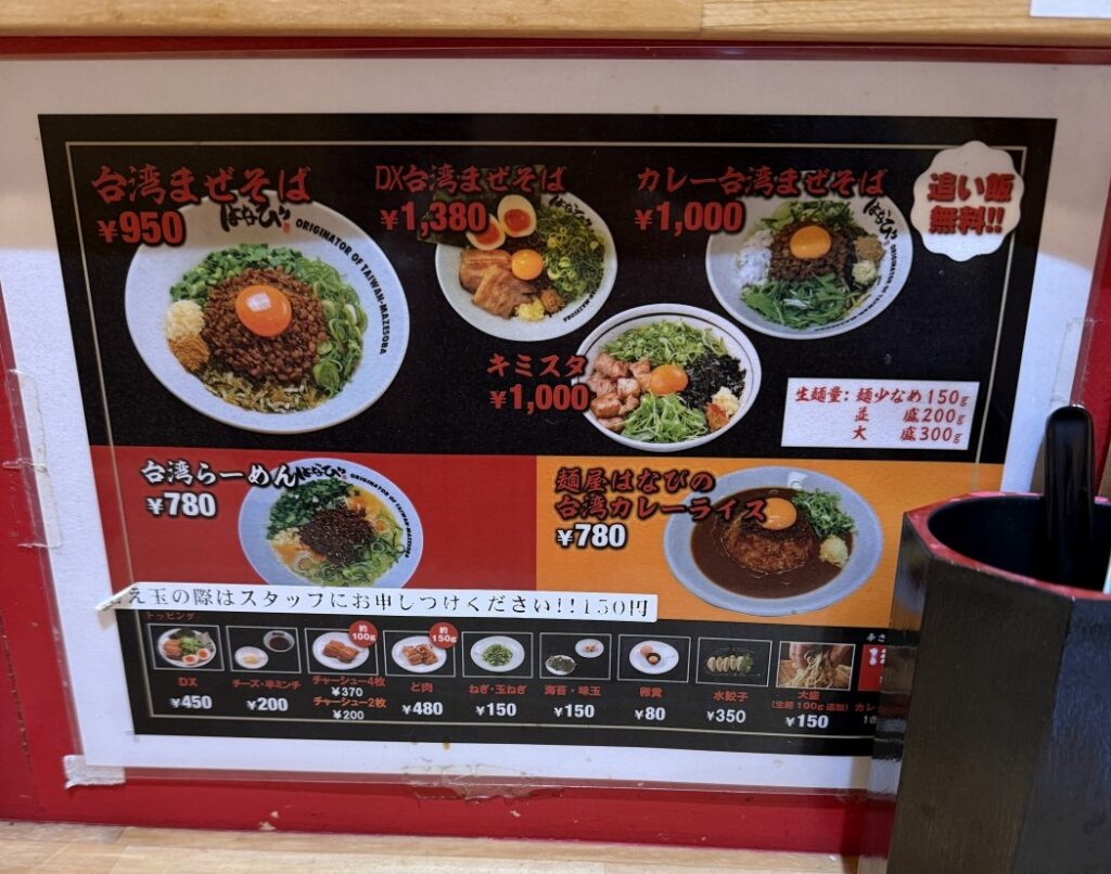 以上、簡単ですが麺屋はなびでカレー台湾まぜそばを頂いたお話でした〜