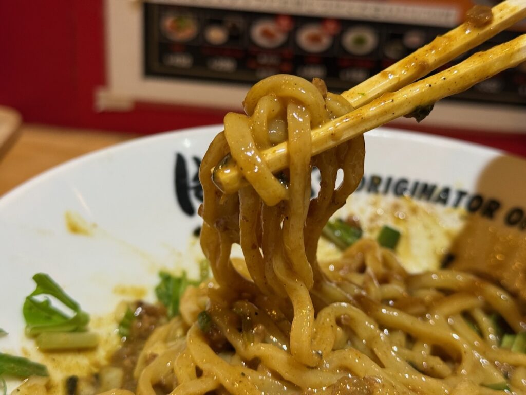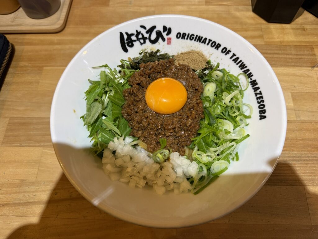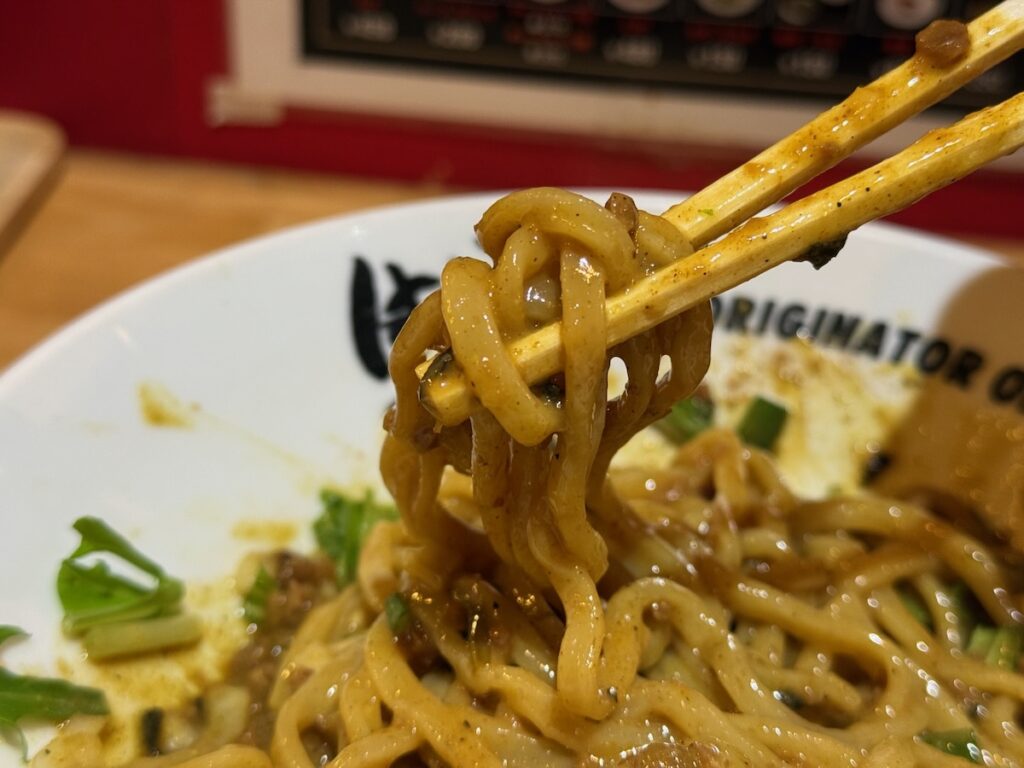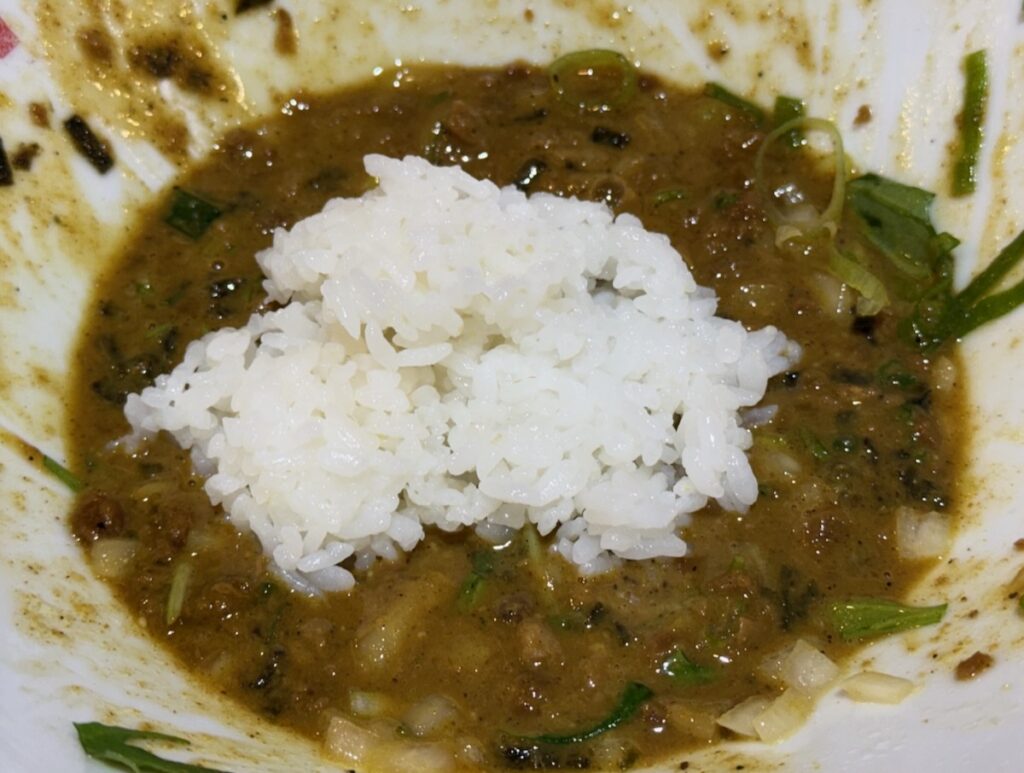 めっちゃうまい。こういうカレー系のラーメンとかまぜそばの中で、頭一つ飛び抜けて美味しい。カレーラーメンとか、カレーまぜそばって中途半端になりがちじゃないですか?まじで、これはうまい。