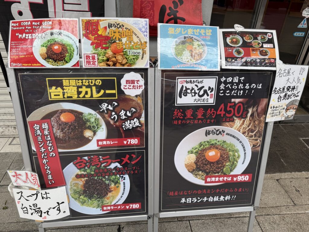 麺屋はなびの軒先のPOP看板です。